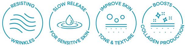 Our formula uses a gentle slow-release system to deliver all the benefits of Retinol while being kinder to your skin, reducing the risk of irritation. The slow-release technology also allows for a more sustained anti-ageing effect.